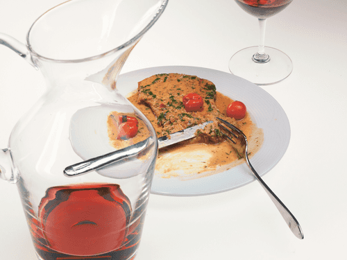 Transfer the cooked medallions to a warm place, wrapped in foil. In the remaining meat sauce in the pan where the medallions were fried, add the wine-cream sauce, mustard, salt, and pepper, whisk and simmer for two minutes, then add tomatoes and herbs and simmer for another minute or two. Pour this sauce over the medallions before serving.