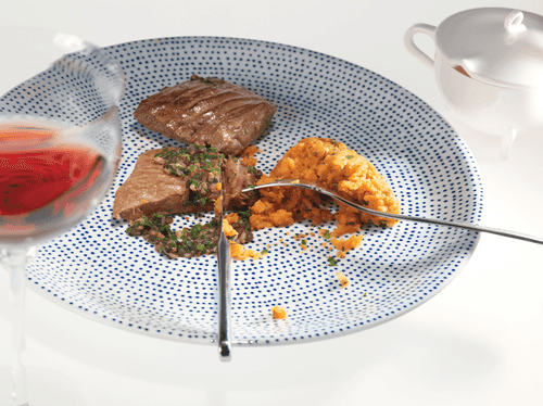 Beef liver with carrot and cilantro puree