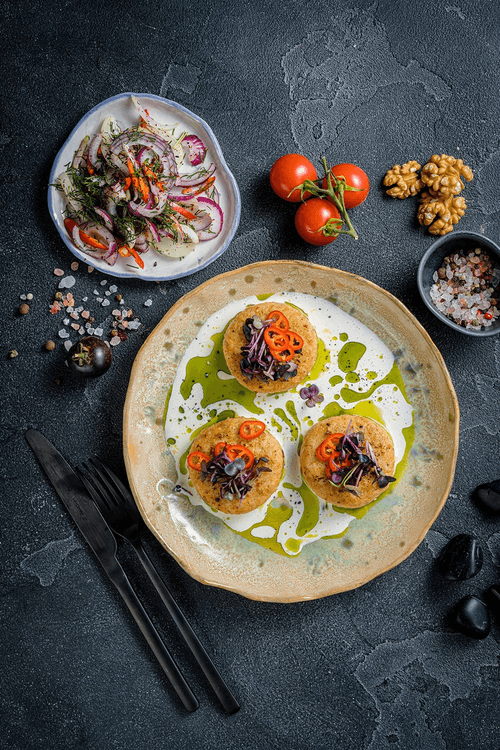 Decorations to your taste. In the photo - a plate with 33% cream and green dill oil.