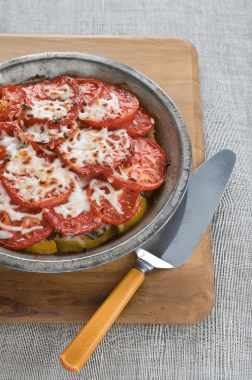 Pork baked under a coat of peppers and tomatoes