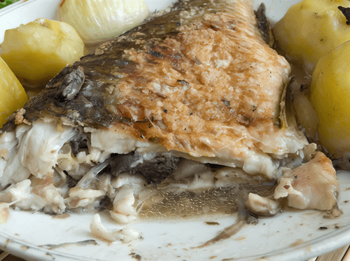 Cut the carp in half and stuff it with cheese filling. Wrap it in foil and place it in the oven at 240 degrees for half an hour.