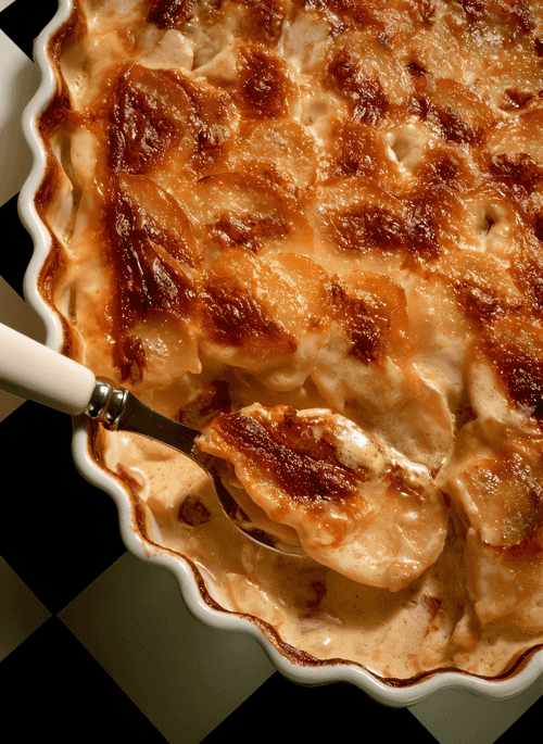 Potato casserole with bacon and onions