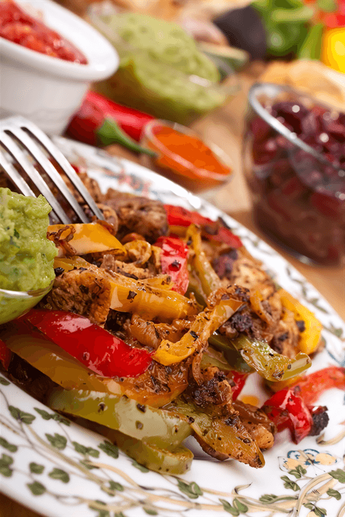 Fajitas with chicken and beans is a vibrant and aromatic dish from Mexican cuisine, known for its simplicity and rich flavor. Originally made by Mexican shepherds who grilled meat pieces on hot stones, this recipe later became popular worldwide. This version uses tender chicken fillet sautéed with bell peppers and spicy chili, creating a harmonious balance of sweetness and spiciness. Canned beans in chili sauce add richness and softness. The finished dish is served with lavash, replacing traditional tortillas, while sour cream adds delicate creamy notes. Fajitas are perfect for friendly gatherings and family dinners, easily adapting to taste preferences and bringing the warmth and joy of Mexican cuisine right to your table.