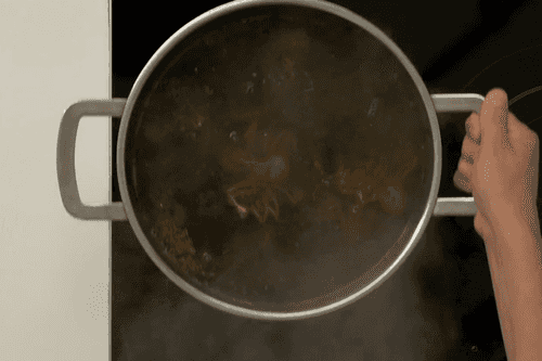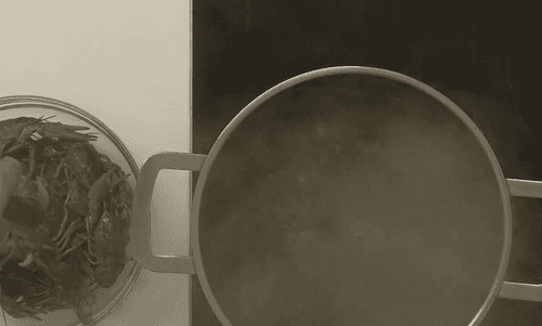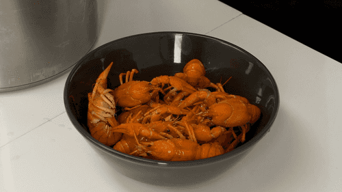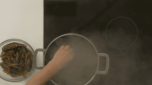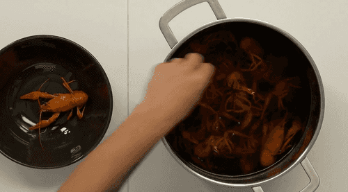 Remove the crayfish from boiling water. It's important not to overcook them in the broth, or they will become too salty. Once the steam stops and you can put your hand in the bucket — the crayfish are ready.