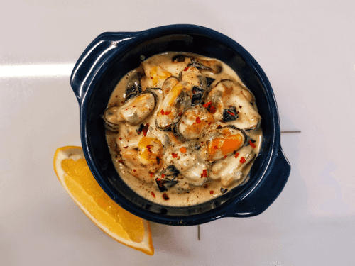 Сливочные мидии в соусе дорблю со шпинатом — это изысканное блюдо средиземноморской кухни, в котором нежные морепродукты сочетаются с насыщенным сливочным соусом и пикантным сыром дорблю. История подобных блюд уходит корнями в прибрежные регионы Европы, где свежие мидии часто готовят с вином и сливками, подчеркивая их морской вкус. Гармония сливок, голубого сыра и игристого вина создаёт глубокий, многослойный вкус, а шпинат и черри добавляют свежесть и легкую кислинку. Это блюдо идеально подходит для ужина в романтической обстановке или торжественного застолья, особенно в сочетании с белым вином и хрустящим багетом.