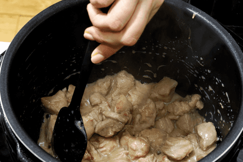 Fry the pork in vegetable oil on the 'Fry' setting for 7 minutes. Remove the meat.
