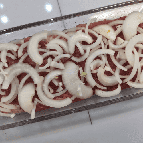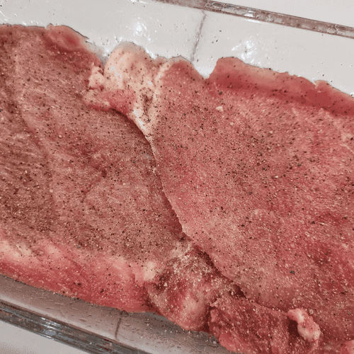 Place the meat in a greased pan and season with black pepper. Add salt.