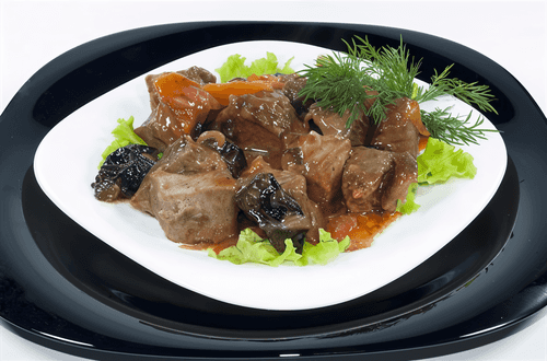 Rabbit stewed in sour cream with prunes is a refined dish of Russian cuisine that combines the tenderness of rabbit meat with the sweet and sour notes of prunes. Historically, this recipe is popular in rural homes and hunting feasts where rabbit meat is valued for its softness and dietary properties. Marinating with rosemary and garlic gives the meat a deep aroma, while stewing in sour cream makes it especially juicy. The addition of prunes brings a pleasant sweetness that softens the taste of spices and enriches the sauce. This dish is perfect for a family dinner or festive table, harmonizing with side dishes of potatoes or buckwheat. Its warm, enveloping flavor makes it one of the favorites among traditional Russian recipes.