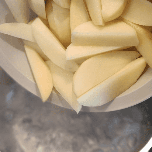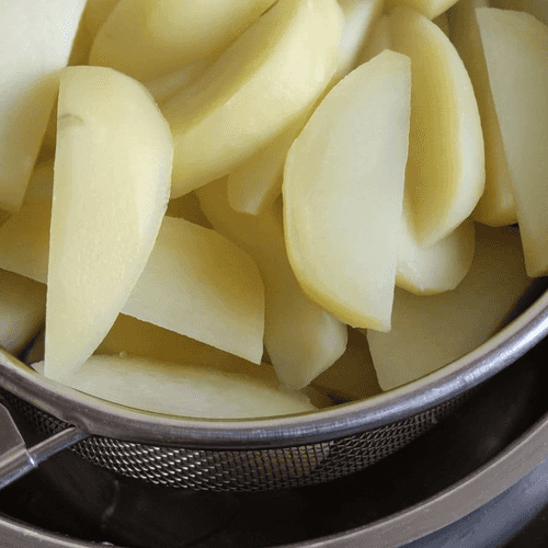 Boil potatoes in salted water for 5 minutes.