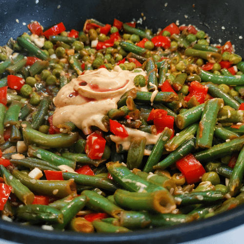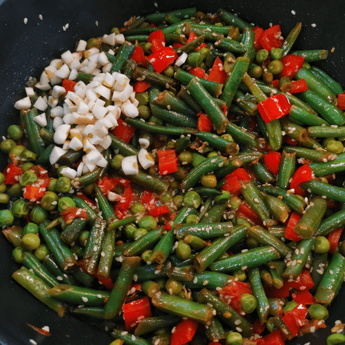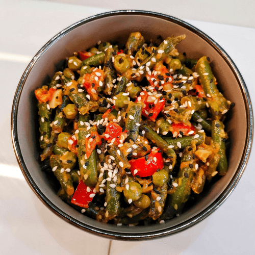 Овощное рагу по-французски – это настоящая симфония вкусов, воплощение простоты и изысканности французской кухни. Это блюдо, корни которого уходят в традиции провансальских фермеров, сочетает в себе сладость запеченного перца рамиро, пикантность халапеньо, нежность зеленой фасоли и горошка. Дижонская горчица и красный винный уксус добавляют утонченные кисло-острые ноты, а кунжут придает мягкий ореховый оттенок. Это рагу – идеальное сопровождение к легкому ужину, его можно подавать как самостоятельное блюдо или гарнир к мясу. В нем гармония свежести и насыщенности, а также теплота домашней французской кулинарии, которая дарит уют и наслаждение в каждом кусочке.