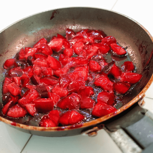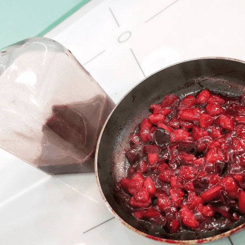 After 3-4 minutes, add wine vinegar, stir, and reduce the heat.
