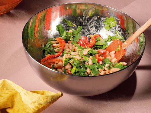These beans can be eaten cold or slightly warmed up. Not stewed, just warmed up. Sweet peppers and other fresh garden greens should remain warm, but still raw. White beans are more caloric than red beans, and their taste is less, so to speak, bean-like - softer, more neutral. Therefore, they adapt more easily to an aggressive taste environment, it is easier to find a pair for them. White beans smooth out the spiciness, they are an ideal buffer. Only potatoes can compete with them in this quality.