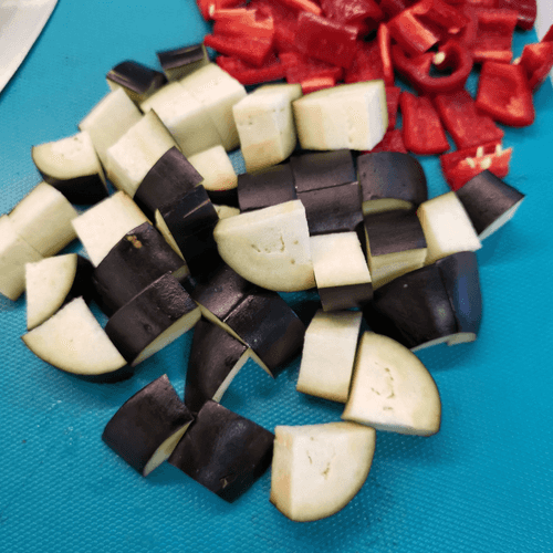 Cut the eggplant into large cubes.