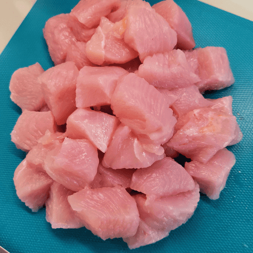 Cut the turkey into small cubes.