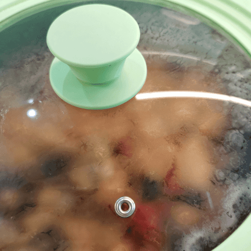 After 3 minutes, reduce the heat to medium, stir, and cover with a lid.