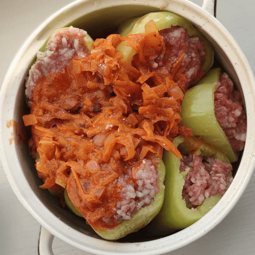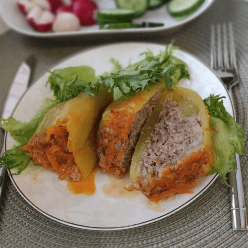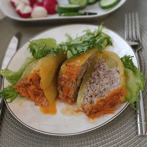 Stuffed pepper is a classic Russian dish that embodies the coziness of home cooking. Its roots trace back to Eastern European culinary traditions, where stuffed vegetables hold a special place. Sweet green pepper becomes the perfect vessel for juicy meat filling with rice, infused with the aromas of spices and vegetables. The light tang of tomato sauce, the creaminess of sour cream, and the spice of black pepper create a rich and balanced flavor. It is baked until tender, filling the home with an appetizing aroma. This dish is perfect for festive gatherings as well as cozy family dinners. It can be served with a side dish or on its own, enjoying each juicy piece soaked in rich sauce.