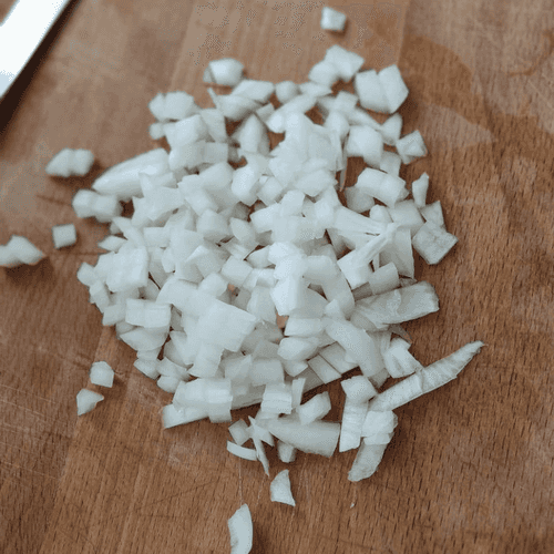 Chop half an onion with a knife.