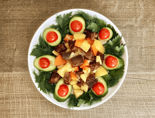 Язык с картофелем и морковью, запеченный в духовке — это традиционное русское блюдо, сочетающее нежность мяса и насыщенный вкус запеченных овощей. Ягнячьи языки, обладая бархатистой текстурой, впитывают аромат специй, а картофель и морковь придают блюду сладковатые и землистые нотки. В России блюда из языка всегда считались деликатесом, подаваемым на торжественные ужины. Запекание в духовке делает его особенно мягким, а овощи пропитываются соками мяса, создавая гармонию вкусов. Подавать его можно как самостоятельное блюдо или с легкими соусами на основе зелени и сливок. Украшенный свежей зеленью, он радует глаз и пробуждает аппетит, а его глубокий вкус остается в памяти надолго.