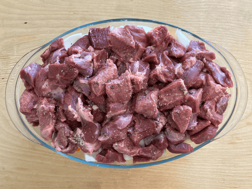 Wash and dry the meat. Cut into pieces 2 cm thick.