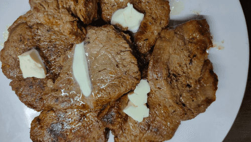 Fry the medallions over medium heat until golden brown (about 3 minutes on each side) in butter, add chopped garlic and salt to taste.
