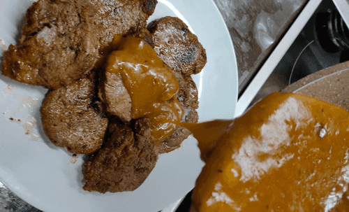 After the sauce is ready, it should be poured over the meat.