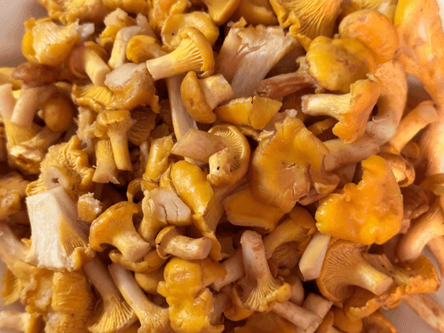 Place fresh chanterelles in a large container and cover with cool water. Let them soak for 10-15 minutes depending on the cleanliness of the mushrooms. Then rinse them under running water. Clean the mushrooms themselves, paying attention to the pores under the cap.