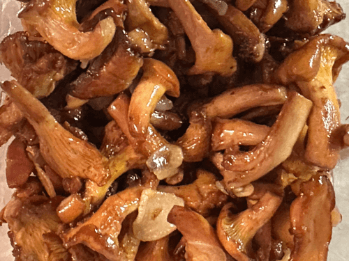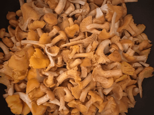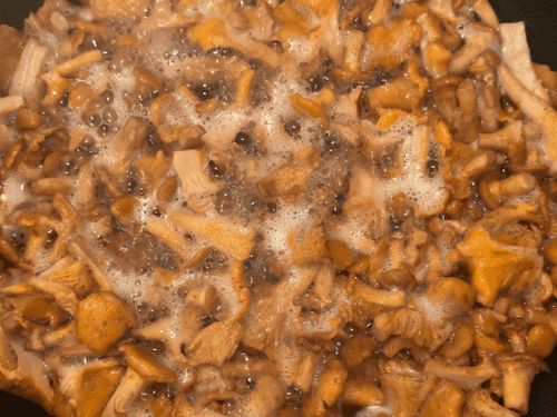Heat a dry skillet over medium heat and add the mushrooms. Large chanterelles can be cut or broken in half. After a while, the mushrooms will start to release water.