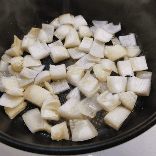 In a deep skillet, heat olive oil and add the onion.