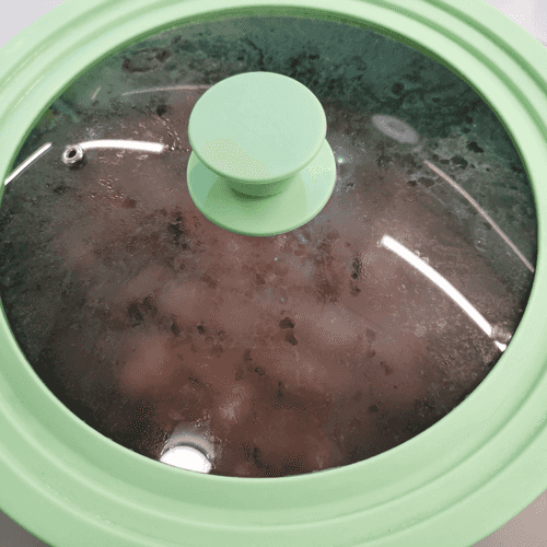 After 2-3 minutes, stir and reduce the heat. Cover with a lid.