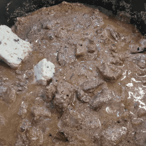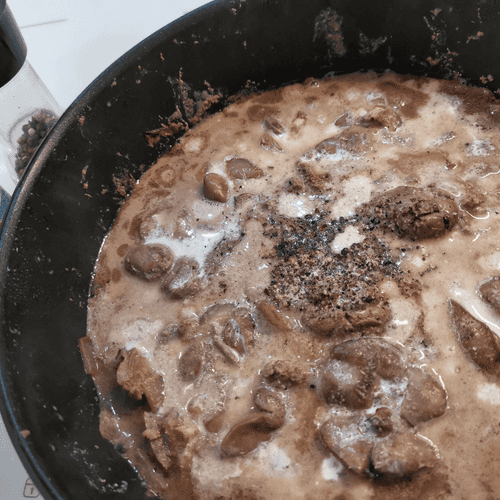 After 7 minutes, stir and pour in the cream.