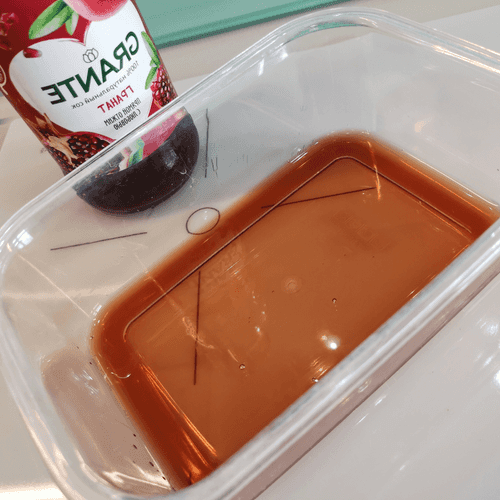 Pour pomegranate juice into a deep container.