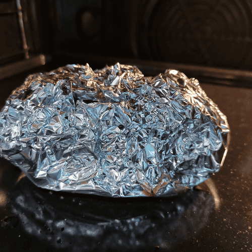 Wrap tightly and send to a preheated oven at 180 degrees.