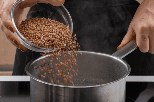 Pour the grain into water. Bring to a boil and reduce the heat to medium.