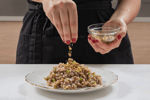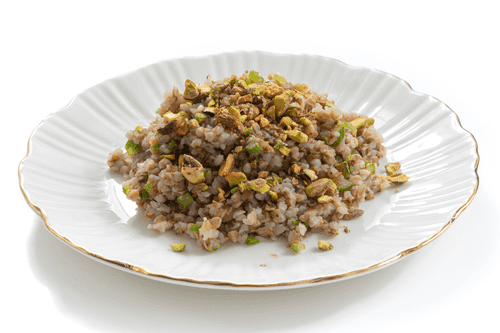Гречка с сельдереем и фисташками — это необычное сочетание традиционной русской крупы с изысканными нотками орехов и свежести. Гречка, почитаемая в русской кухне за свою питательность и богатый вкус, здесь приобретает новую грань благодаря хрустящему сельдерею и нежным фисташкам. Легкая обжарка овощей раскрывает их аромат, а сливочное масло добавляет мягкость текстуре. Блюдо идеально подойдет как самостоятельный ужин или гарнир к мясным и овощным блюдам. Такое сочетание вкусов — пример тонкого баланса между простотой деревенской кухни и утонченностью гастрономических экспериментов. Гречка, пропитанная ароматами жареного лука и свежести сельдерея, дарит теплоту и уют домашнего очага.