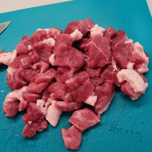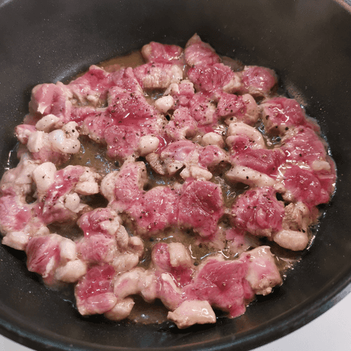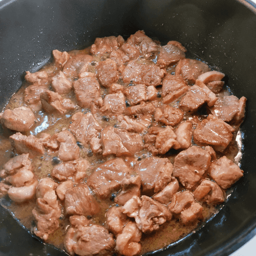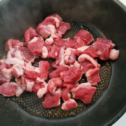 Put the chopped duck in the oil.