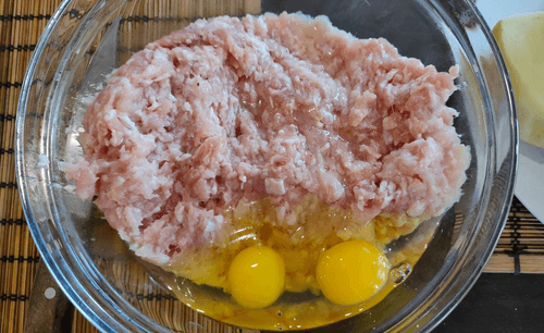 Add eggs to the minced meat.