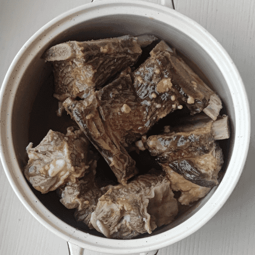 Place the ribs in a deep dish and pour the marinade over them. Put in the refrigerator for 1 hour.