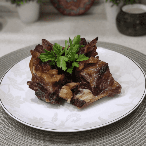 Говяжьи ребра в вине — это роскошное блюдо русской кухни, воплощающее богатство вкуса и глубину ароматов. Секрет его мягкости заключается в мариновании ребер в винном соусе с добавлением соевого соуса, карри и чеснока. В процессе запекания мясо впитывает сладкие и пряные нотки коричневого сахара, раскрывая богатый вкусовой букет. Исторически подобные блюда готовили в русских дворянских домах, где ценили сочетание мяса и вина. Это блюдо идеально подходит для праздничного ужина, восхищая своим насыщенным вкусом и аппетитной текстурой. Подача с зеленью завершает композицию, придавая свежесть и изысканность. Говяжьи ребра в вине — настоящее кулинарное произведение, пробуждающее чувства и создающее атмосферу уюта.