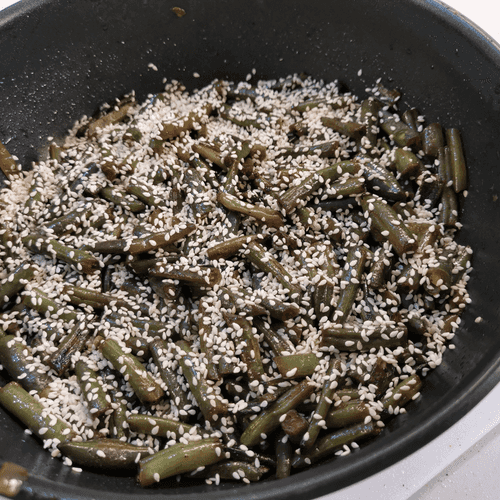 Sprinkle with sesame and simmer for about 3 more minutes.