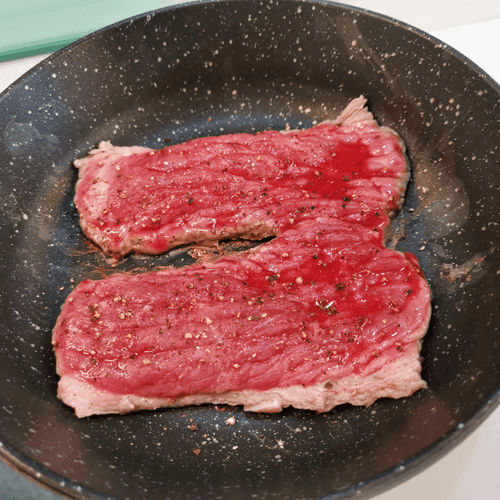 Season with a pepper mix and salt. Fry on both sides over medium heat until lightly browned.