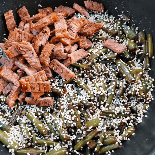 Lobio with pork is an interpretation of a traditional Georgian dish that combines the rich flavor of beans with the tenderness of marbled beef. The origins of lobio trace back to ancient Georgian cuisine, where beans symbolized hearty and soulful home cooking. In this version, the dish is enriched with duck fat, adding richness, while soy and Worcestershire sauces deepen the flavor. A light nutty hint from sesame completes the composition, highlighting an Eastern note. The dish is perfect for both a casual lunch and a cozy family dinner where harmony of taste and aroma of spices are valued. Lobio with pork is served hot, infused with spices and warmth of home cooking, evoking associations with a Georgian feast full of hospitality and warmth.