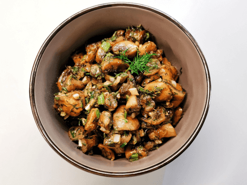 Mushrooms with garlic and jalapeño peppers are a bold culinary experiment embodying vibrant flavors and aromas. The combination of tender mushrooms, spicy jalapeño, and fragrant garlic gives the dish a rich, piquant taste. Cream cheese and mayonnaise create a velvety creamy texture that softens the pepper's heat. This dish is perfect for a warm family dinner or as an original appetizer. It pairs wonderfully with crispy bread or a light salad. Gourmet cuisine demonstrates how simple ingredients can transform into a true culinary sensation, blending rich flavors and unexpected accents. Preparation requires minimal time, but the result will surely delight with its rich taste and appetizing aroma.