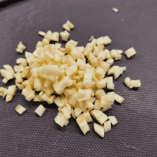 After 3-4 minutes, season with the pepper mixture and stir. Reduce the heat to medium.