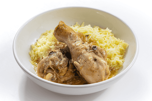 Serve the cooked chicken with your favorite side dish, such as rice. You can drizzle the side with the oily sauce from the pan.