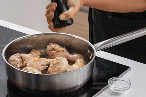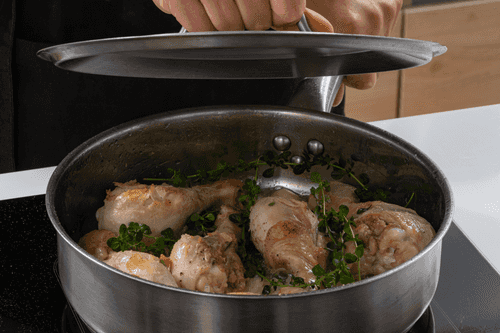 Chicken in a skillet is a simple and traditional dish of Russian cuisine that stands out for its tender meat and rich aroma. Golden-brown fried chicken legs stewed with garlic, thyme, and butter acquire a unique flavor – soft, juicy, with light herbal notes. The dish is often served with rice that perfectly absorbs the buttery sauce, giving the side dish a rich taste. This method of preparing chicken originated in Russian home cooking where simplicity, heartiness, and natural ingredients are valued. It is perfect for a family dinner, creating an atmosphere of coziness and warmth. Serve with your favorite side and enjoy the harmony of flavors!