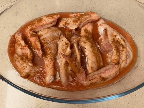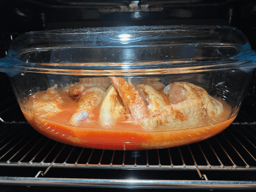 Chicken in spicy tomato sauce is a dish that combines the rich flavor of tomatoes with the spiciness of spices. This recipe traces back to Russian cuisine, where simplicity in preparation meets depth of flavor sensations. Baked chicken pieces absorb the heat of pepper and the sweet-sour notes of tomato juice, creating an incredibly aromatic and juicy dish. It is perfect for a cozy family dinner or festive gathering. The dish can be served with a side of potatoes, rice, or fresh bread to enjoy every drop of the appetizing sauce. Garnished with pieces of pepper, it looks not only appealing but also stimulates appetite, making the meal special.