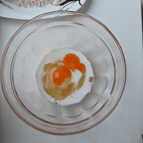 In a deep bowl, whisk eggs with milk and a pinch of salt.