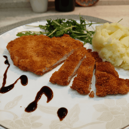 Chicken schnitzel is a refined dish of European cuisine, rooted in the traditions of German and Austrian culinary arts. Its crispy golden crust conceals juicy and tender chicken fillet infused with the aroma of spices and a hint of paprika's mild spiciness. The flavor of the schnitzel is balanced: the tender meat harmonizes with the crunch of the breading and the richness of spices. This dish is versatile—it can be served with sides, fresh salads, or sauces that complement its rich taste. Chicken schnitzel is perfect for a cozy family dinner or festive table, offering the warmth of home cooking and enjoyment in every bite.