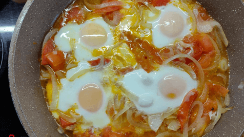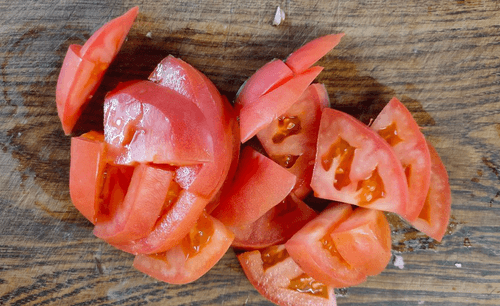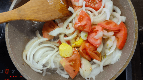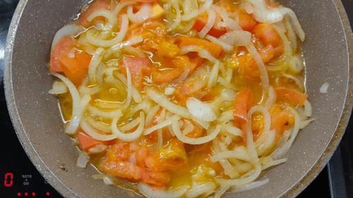 In about 10 minutes, the tomatoes and onions will be ready (the tomatoes will soften and the onions will become soft but slightly crunchy).