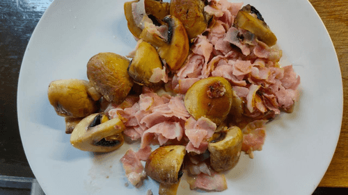 Carefully arrange the mushrooms and bacon on a plate and serve at the table.